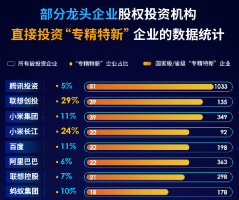 从结果来看,腾讯已经是龙头企业型投资机构中,投出“专精特新”的绝对数量最高的公司。