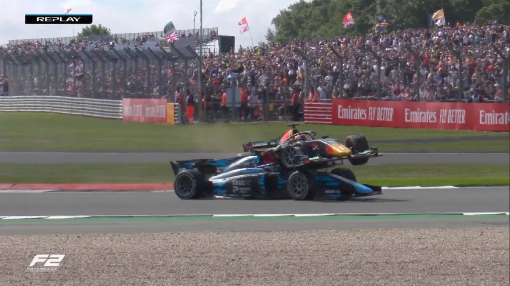 其实,在F1银石站开幕前的“垫场赛”——F2的比赛中,尼萨尼防守豪格时发生擦碰,导致豪格右前胎爆胎之后失控,随后豪格的赛车撞到路肩并“腾空起飞”,径直撞到了在过弯的尼萨尼。Halo保护了尼萨尼的头免于受到撞击!两位车手都平安无事地离开了赛车!