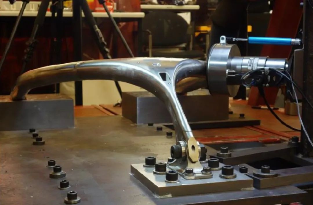 F1规则对于防滚架的要求:必须通过直径200mm且垂直于承载轴的刚性平垫,向防滚架结构顶部施加相当于横向50kN、纵向向后60kN、垂直方向90kN的负载。