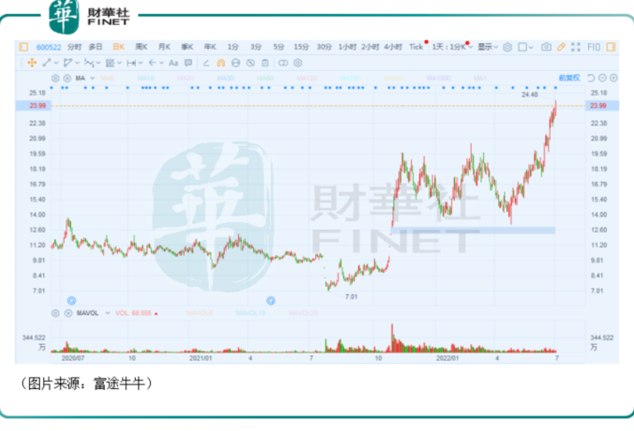 一季度净利创单季度记录的成绩应该也是支撑中天科技股价自2022年4月底以来持续上涨的原因所在。
