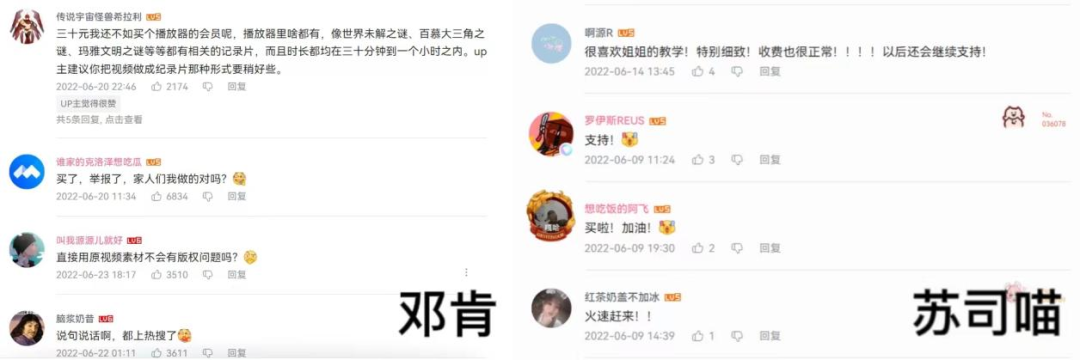 尽管以上博主的付费视频受众均在几百人上下,远不及邓肯视频的3.3万播放量,但由于其受众稳定且圈层较小,内容也多为输出知识的干货,用户评价相比邓肯更高,从长远来看,极有可能积累一批稳定的付费用户。