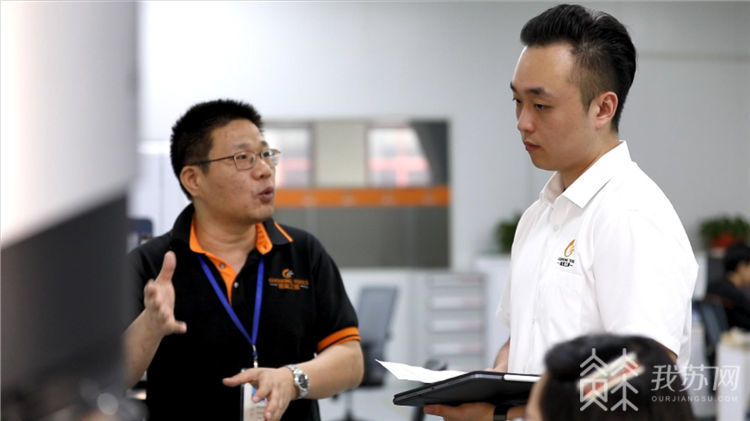 吴国樑(右)与同事沟通