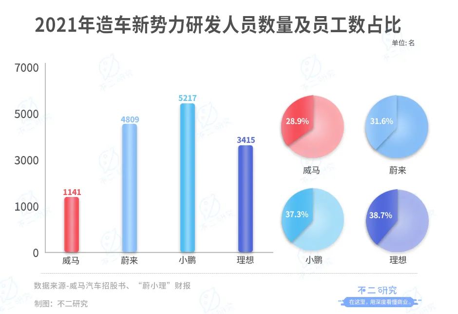 这样的研发投入在以大力投入研发标榜自身的造车新势力中显得十分薄弱。