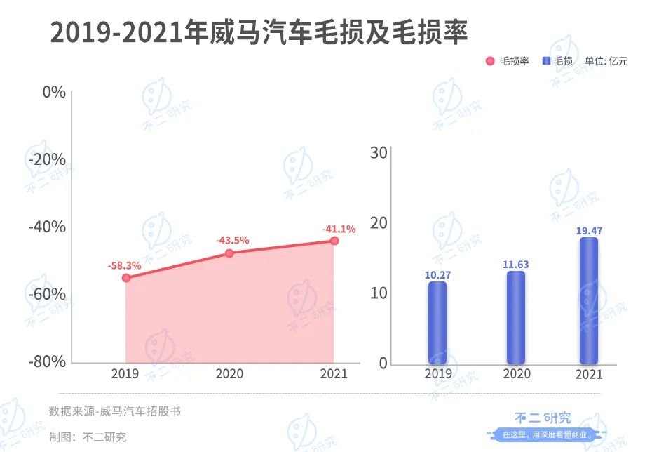 据招股书显示,2019年-2021年,威马汽车的毛利率分别为-58.3%,-43.5%,-41.1%。尽管威马汽车的毛利率在不断改善,但亏损额仍巨大。
