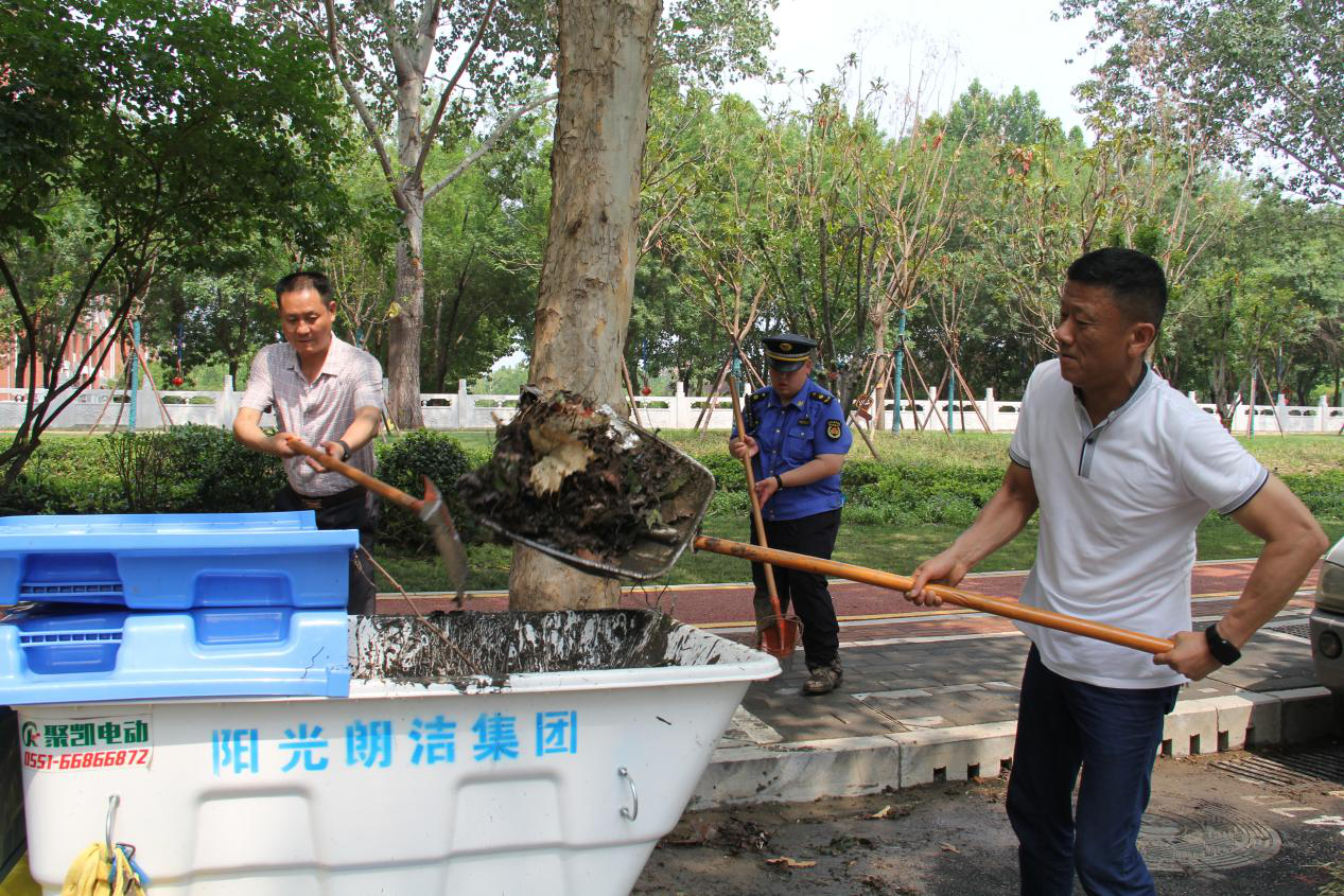 “绝对不能影响群众出行”。新中大道与向阳路交叉口处地势低,积水非常严重,是重点区域,周边水退后淤泥遍地,环境极差,严重影响市民出行安全。王志文上午迅速召集局机关科室、环卫处、市政设施维护中心、市园林绿化中心、监察支队800余人,投入到该处路段进行重点突击清理。王志文亲自拿起铁锹在路段带头清理淤泥,虽然一夜未眠精神疲惫,但是他依然冲锋在前。在他的带领下,其他人员纷纷投入到排涝清淤的战斗中。中午不休不眠,在他们数小时的努力下,路段淤泥终于被彻底清理干净,还市民一个干净整洁的出行环境。