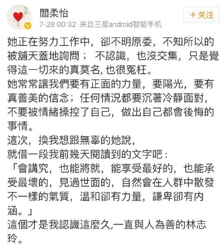 不管怎么样,志玲姐姐作为受害者,以这样无害的姿态来面对大家,博得了许多网友们的同情。有人还分分钟对志玲姐姐路转粉了。
