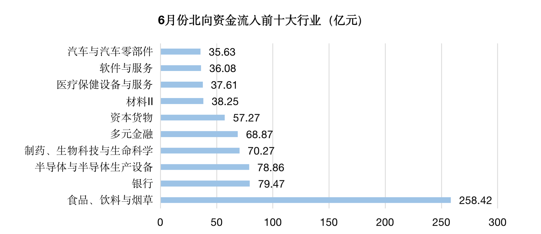 具体到细分板块来看,食品、饮料与烟草行业一枝独秀受到“聪明钱”青睐,6月份单月净买入金额超258亿。结合市场表现来看,6月大消费板块中旅游与景区、酒店餐饮、白酒、食品饮料指数(申万)分别大涨20.64%、16.63%、14.55%、13.05%,一扫前期颓势。