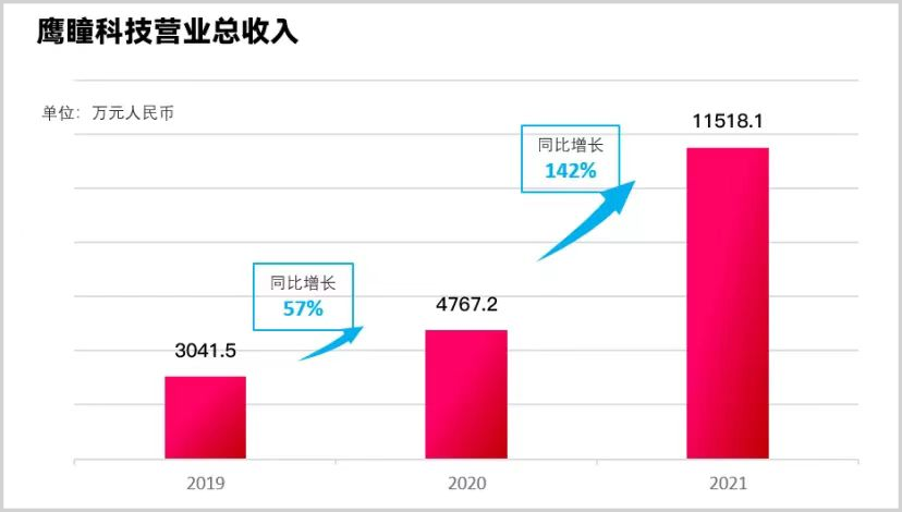 据公开财报,2019-2021年,港股上市公司鹰瞳科技的营收分别为3041.50万、4767.20万、1.15亿,过去两年的增长率分别高达57%和142%。
