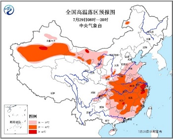 中央气象台预计,江汉、江淮、江南、华南高温将持续到7月31日前后,之后江南北部、江汉、江淮趋于减弱;江南中南部、华南趋于结束。7月31日至8月4日,北方地区高温强度将进一步加强,范围也将扩大。