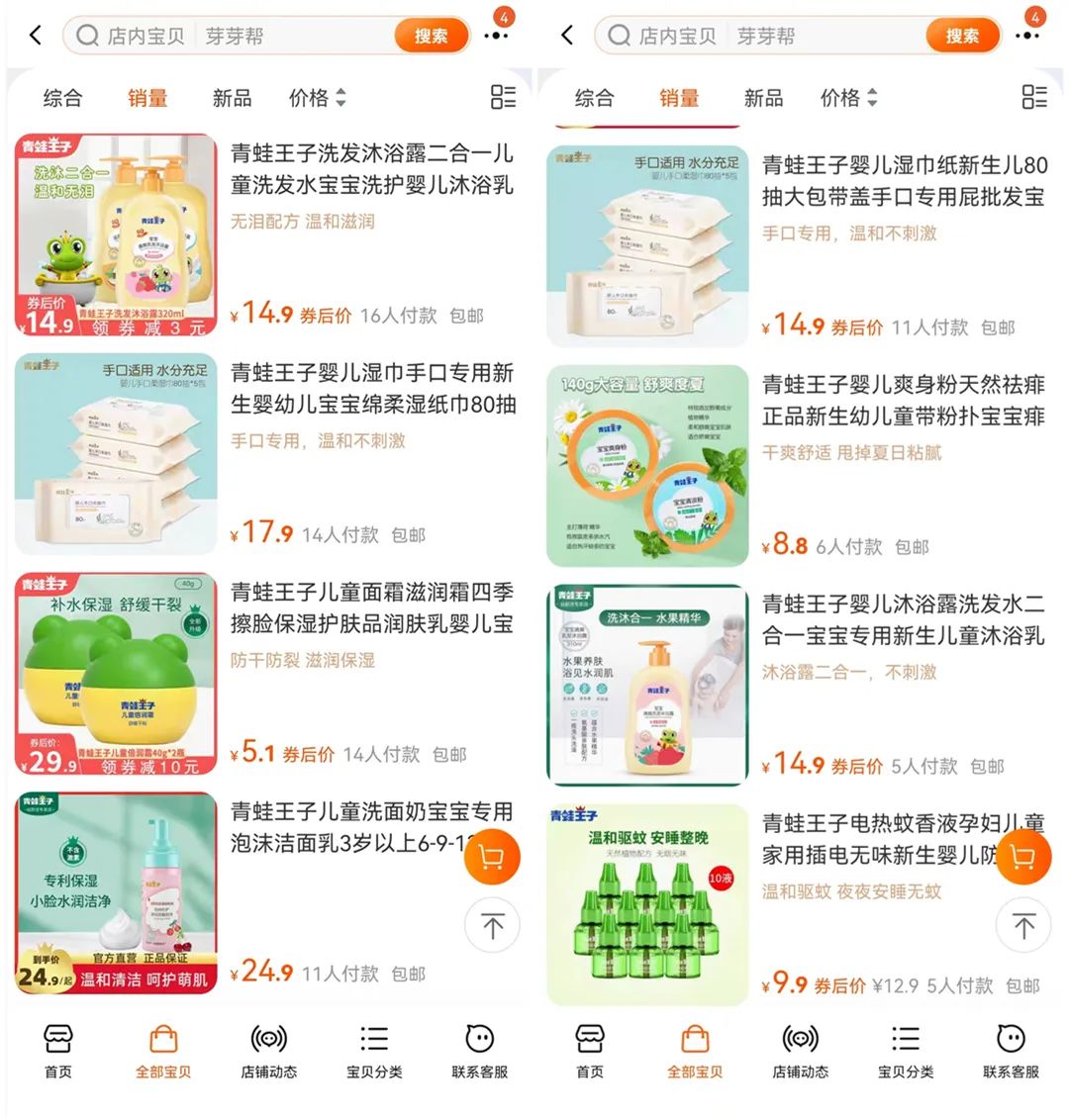 据悉,在收购爱洁丽后,丝耐洁还在天猫开设了“青蛙王子丝耐洁专卖店”,销售青蛙王子儿童霜、洗手液、驱蚊液等产品。