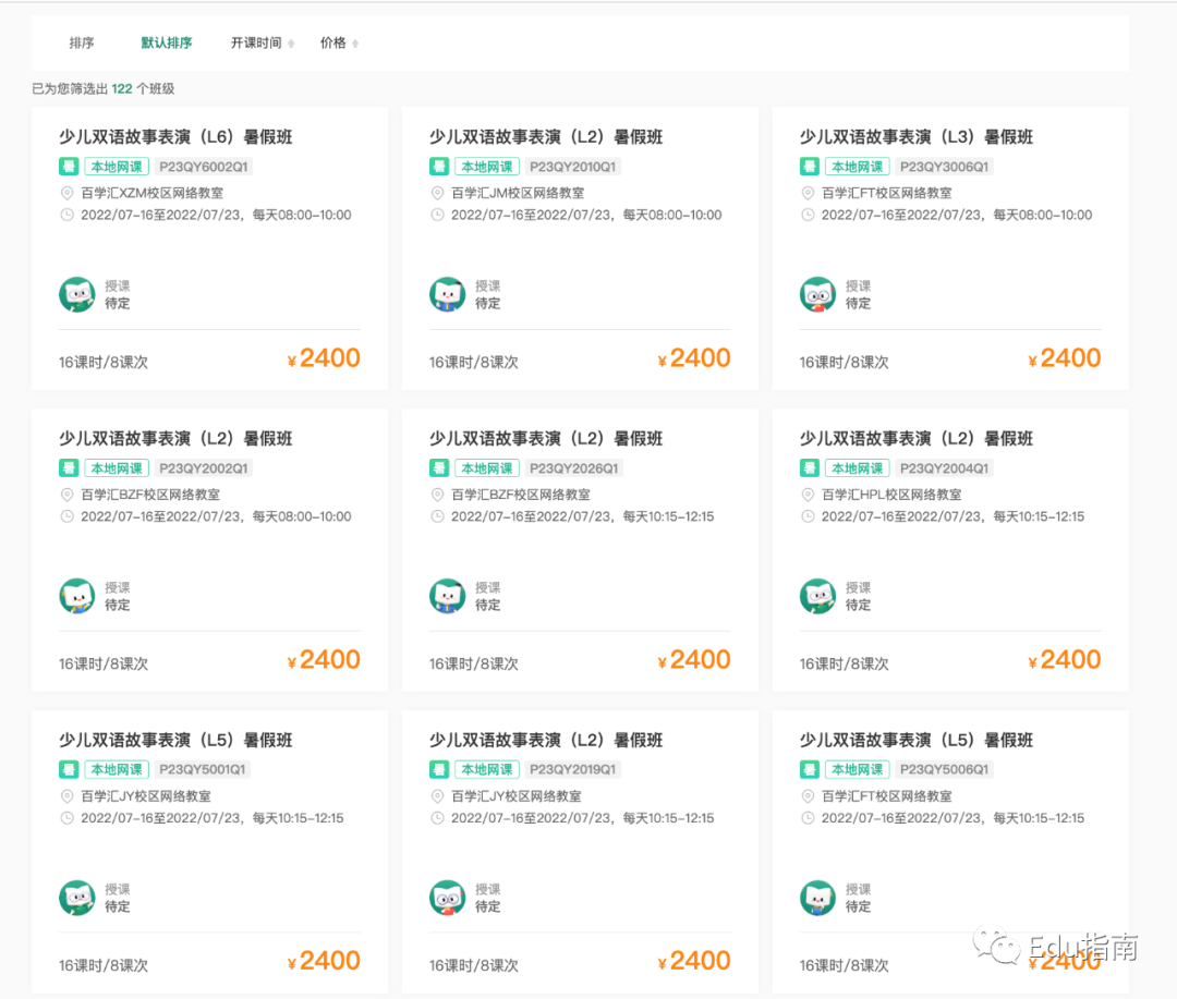 该类素质素养课程定价主要在千元梯度。例如双语故事表演,16课时暑假班在线教学,通常定价在2400元,平均课时费用为150元。