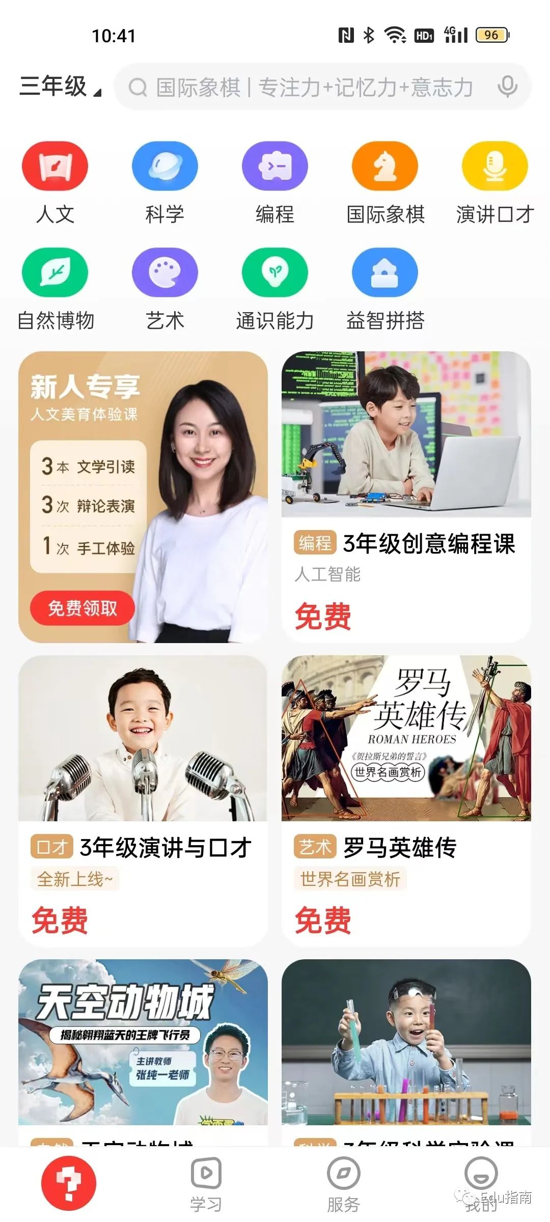 当前学而思网校提供人文、科学、编程、国际象棋、演讲口才、自然博物、艺术、通识能力、益智拼搭等课程。