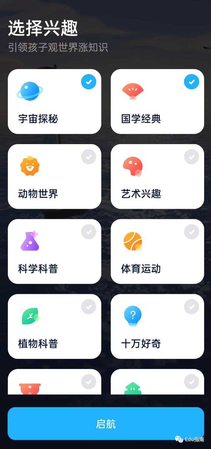 具体来看该产品上线宇宙探秘、国学经典、世界动物、艺术兴趣、科学科普、体育运动、植物科普、历史文化等等领域视频知识。