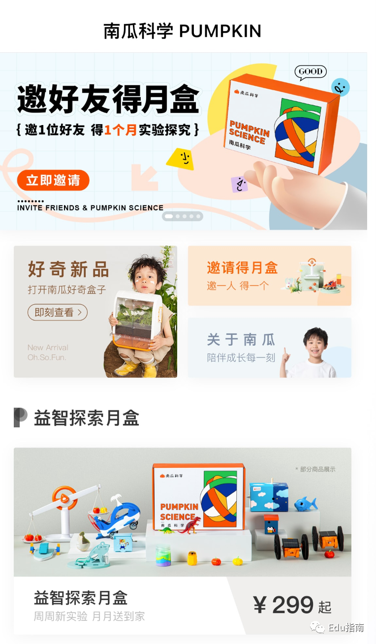 当前南瓜科学平台已推出多个主题的盒子产品,例如好奇种植舱(沉浸式种植)、绘画手工盒子(艺术与动手)、运动体能盒子(身体成长)、控笔迷宫盒子(逻辑思维)等。各主题盒子定价在数十元至百元级别。例如好奇种植舱盒子,定价为429元,而控笔迷宫盒子定价为49元。