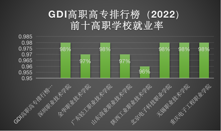 2022年6月,界面教育以家长身份咨询《GDI高职高专排行榜(2022)》前十名学校的就业率,深圳职业技术学院等多所学校的就业率高达98%。