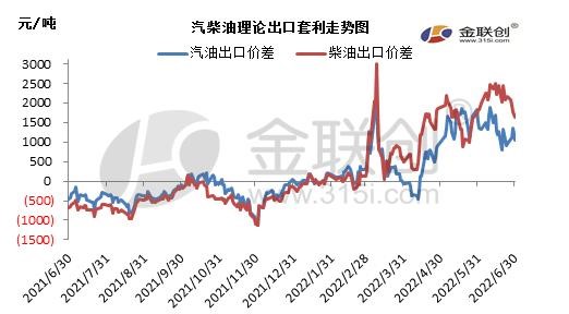 金联创数据显示,截至6月30日,华南地区汽油出口新加坡套利均值为1286元/吨,柴油出口套利均值为2150元/吨。