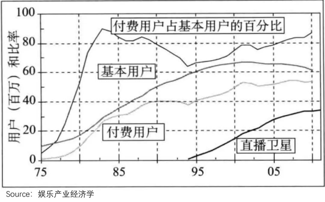 用户的付费环境就此建立完善,如下图,80年代初美国的付费率已达到90%。