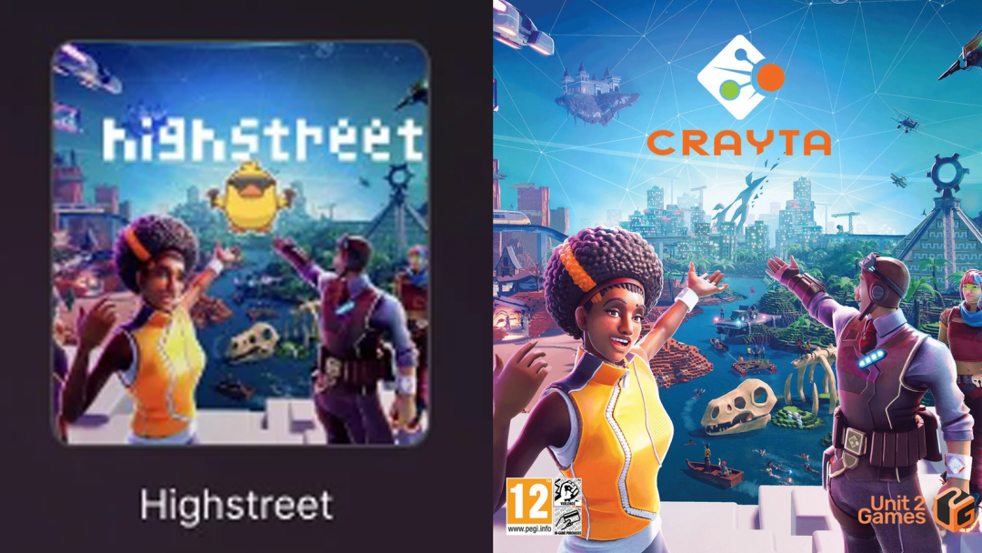 比如加拿大元宇宙产品Highstreet的ICON,就和Meta旗下的游戏开发平台Crayta的宣传海报高度相似,接近1:1仿真的还原程度不禁让人思考这或许不是一次“抄袭”,而是一次纯粹的“挪用”。