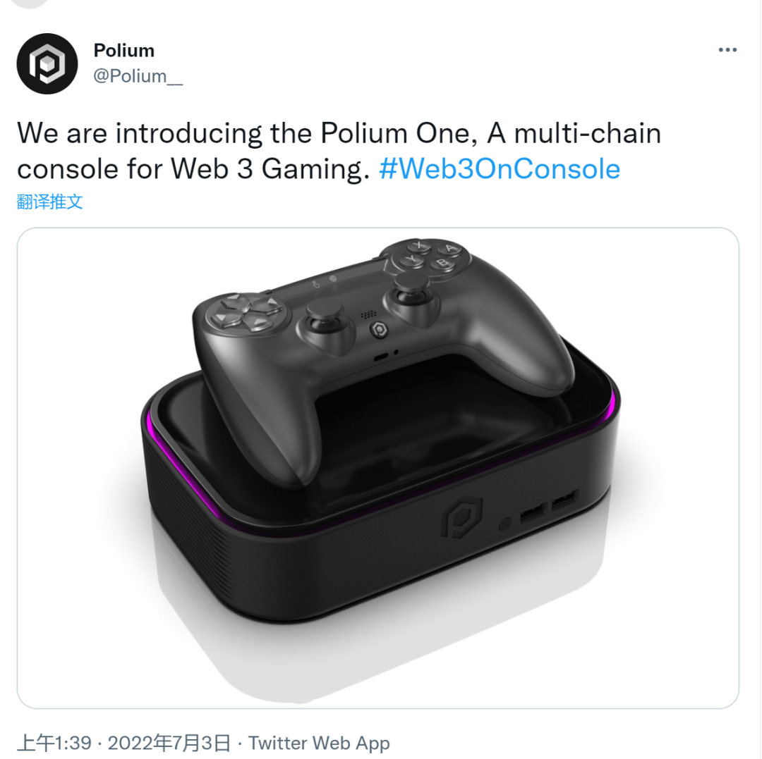 上周末,Web3行业发生了一件大事:一家名为Polium的公司通过社媒宣称,他们将发布“世界上第一款NFT游戏主机”Polium One,支持目前绝大部分用于链游开发的区块链协议,包括ImmutableX、Solana、Ethereum、Polygon、BNB、EOS、Wax、Harmony,是“为Web3而生的下一代游戏主机”。根据同步发布的时间线,Polium One预计会在2024年正式对外发售,销售额设定为100万台。