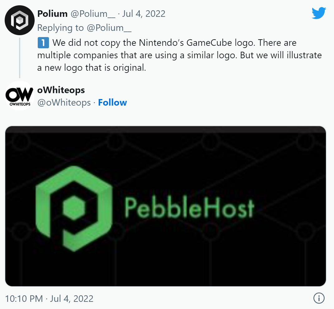 虽然Polium很快做出了官方回应,表示“他们没有抄袭任天堂”,并且还对设计理念进行了详细地阐述——中间镂空部分的“P”代表公司名Polium,中间的立方体则代表了这款主机的最大卖点,即NFT和区块链——但人们也很快找到了新的“素材来源”,《我的世界》玩家表示这很像他们熟悉的虚拟服务器供应商PebbleHost。