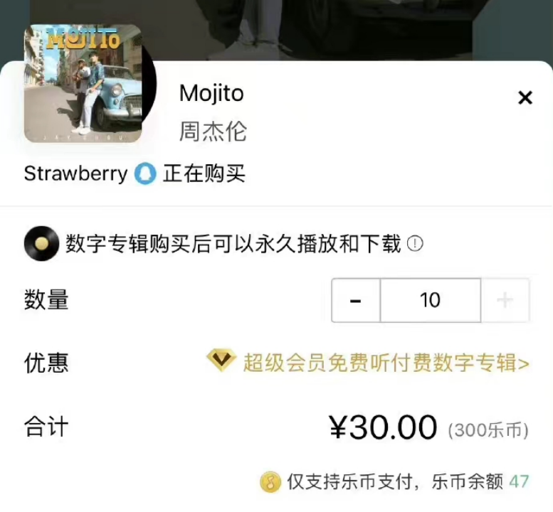 一周后,便有网友发现,QQ音乐、网易云音乐等平台对数字专辑的购买规则进行了调整,QQ音乐将之前限购一张调整为最多购买10张+赠送10张,数字专辑消费上限达到20张,规则里还说明,赠送数量计入总销量数据中。
