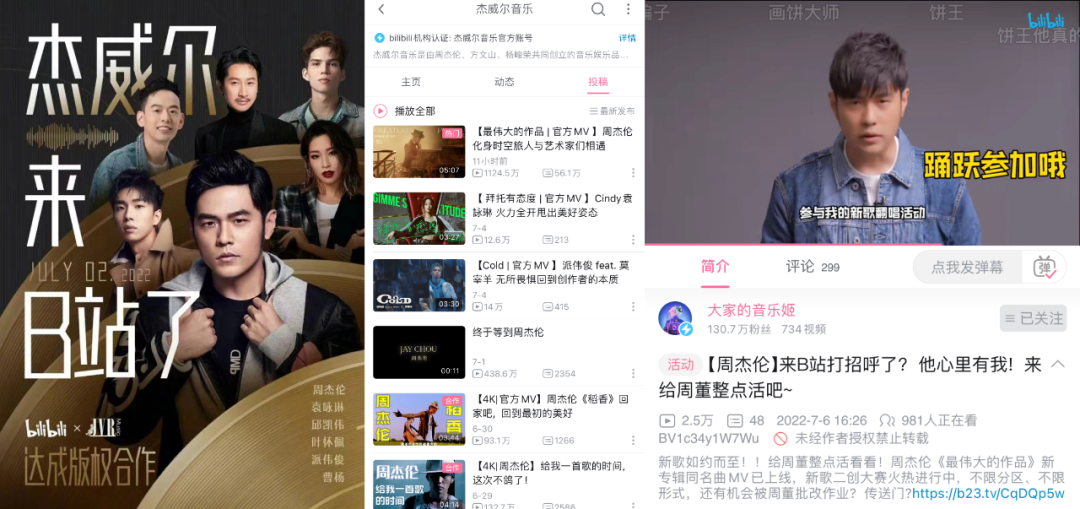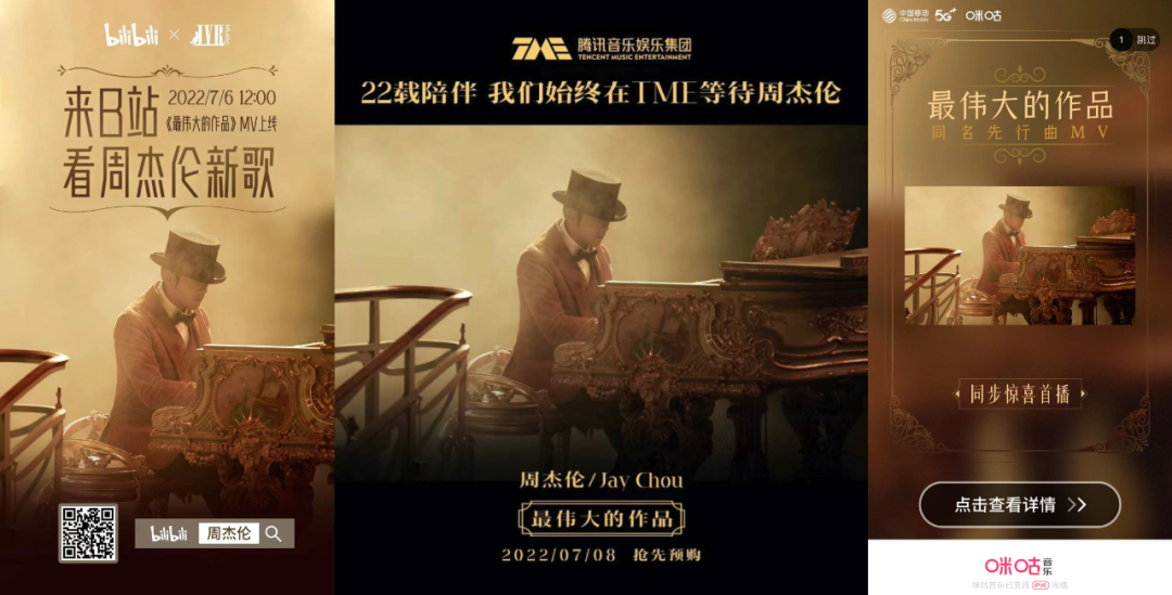 “多种播放格式”背后,源于杰威尔此次与多平台合作MV首发的新打法。一来,选MV而不是音频首发,昭示了从传统唱片时代走出的周杰伦有意跟随“音乐可视化”大浪潮;二来,与短视频平台的抖快、中视频平台的B站、音乐平台的QQ咪咕酷狗酷我华为等“兼容并包”地合作,是它能引爆全网热度的营销秘诀。