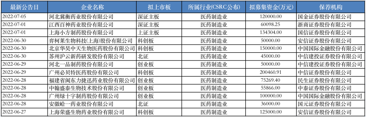 根据证监会行业划分,275家中13家为医药制造企业。具体来看,科创板、创业板各受理4家,深主板、北交所各2家,沪主板1家。