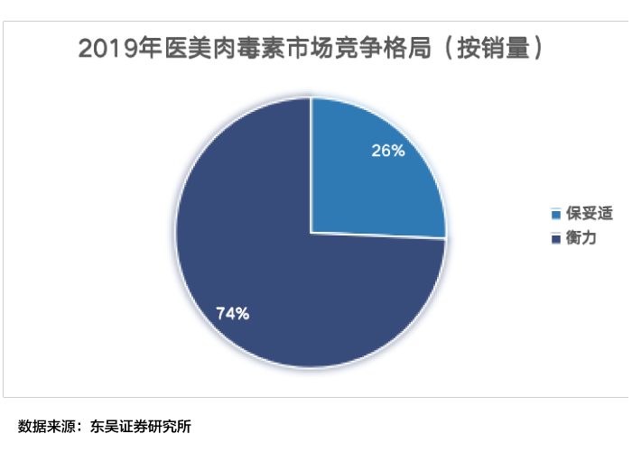 事实上,肉毒素在我国临床应用已有接近30年的时间。1993年,由兰州生物所生产的我国首款肉毒素产品衡力获批上市,2007年美国艾尔建的保妥适正式应用于医美领域。在2020年前,国内肉毒素市场基本属于“双雄争霸”局面,其中衡力的销量占比超七成。