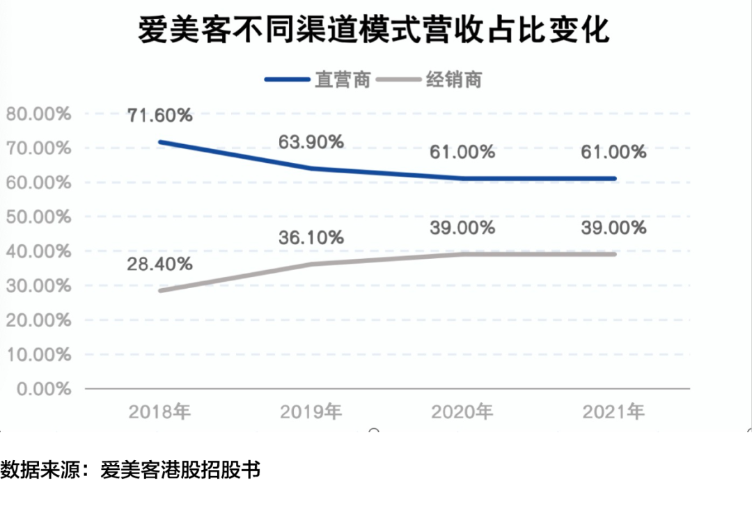 而在渠道方面,近年来为了迅速扩大规模保持高增长,爱美客在“直销”模式上也有所松动。港股招股书显示,2018年至2021年间,爱美客经销商收入占比从36.1%上升到39%,2021年新增经销商数量接近2018年的三倍。