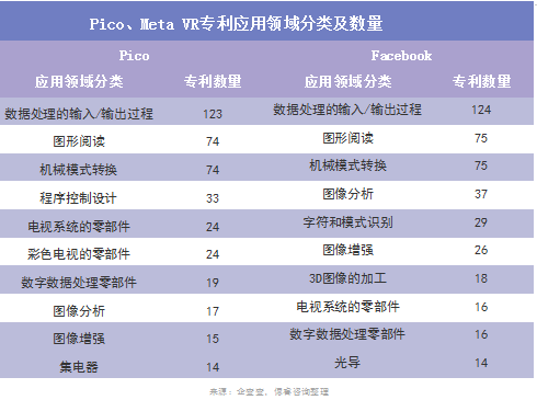 微妙的是,在Pico专利数量绝对领先的情况下,在图像分析、光导等关键应用领域,Meta似乎总能以1~2项的微小数量差距略胜一筹。