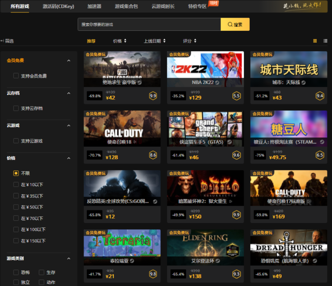 (Steam 首页推荐游戏及价格 图源:steam 客户端)