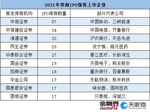 中信建投的IPO保荐数为34家,仅次于中信证券。三大电信运营商之一的中国电信回归A股便是由中信建投和中金联合保荐。而另一家万亿资产沪农商行的首发保荐机构则是国泰君安和海通证券。