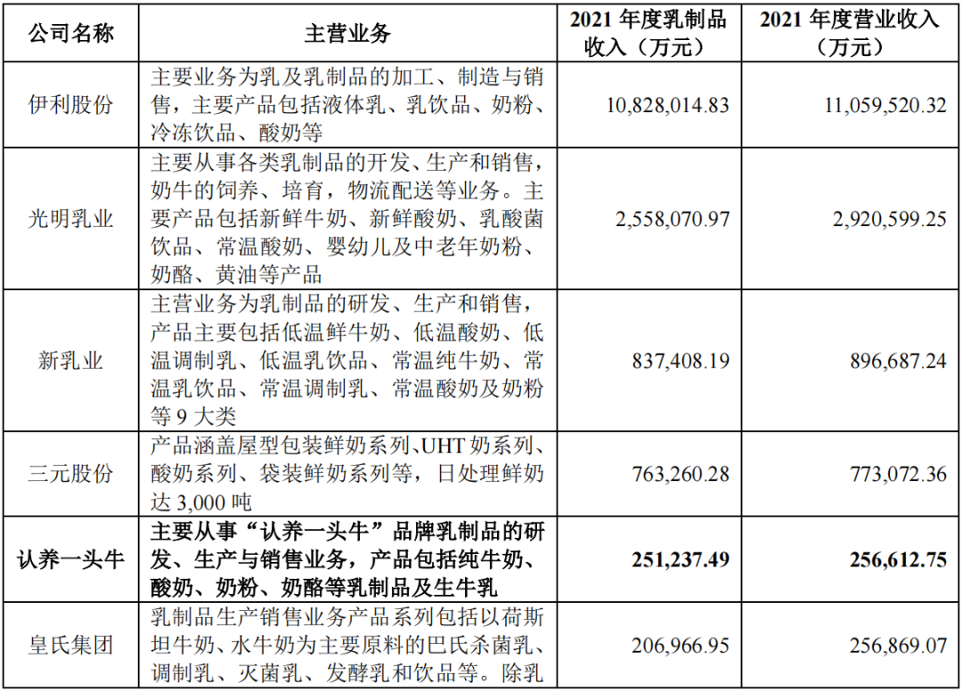 多家上市乳企的营业数据对比,认养一头牛排名第五