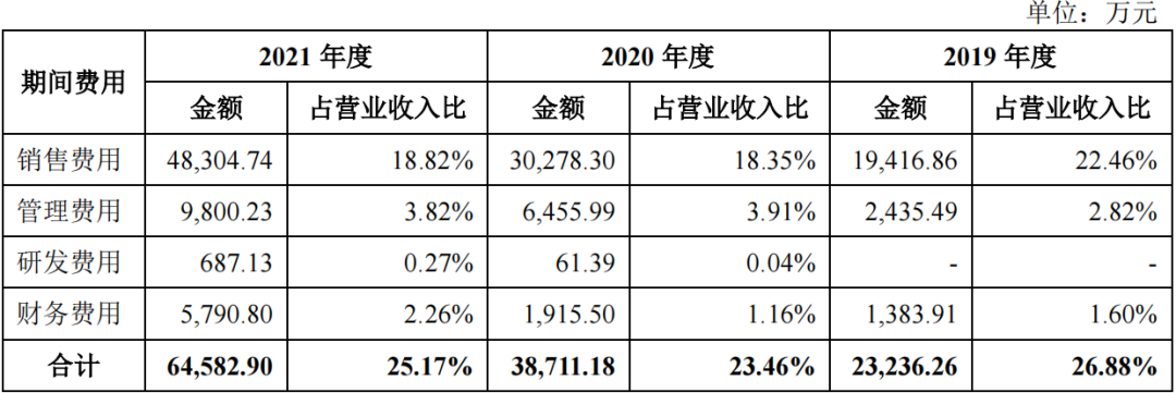 2019年-2021年,公司线上销售收入分别为5.28亿元、12.46亿元和19.51亿元,分别占主营业务收入的62.30%、77.50%和77.67%。