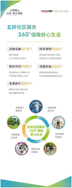 此次南京万科物业以“万科集团五好服务基因“,入驻南京红豆·香江华府,将以更优质的生活服务,360°保障业主的舒心生活,“让红豆社区的业主体验到物业服务之美好”。