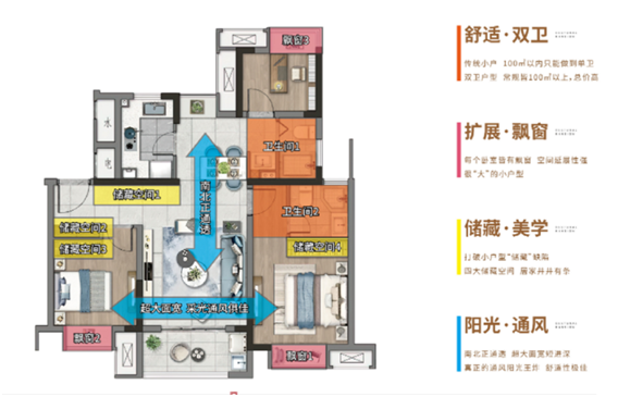 约89㎡三房双卫王冠户型完胜市场99%对手!