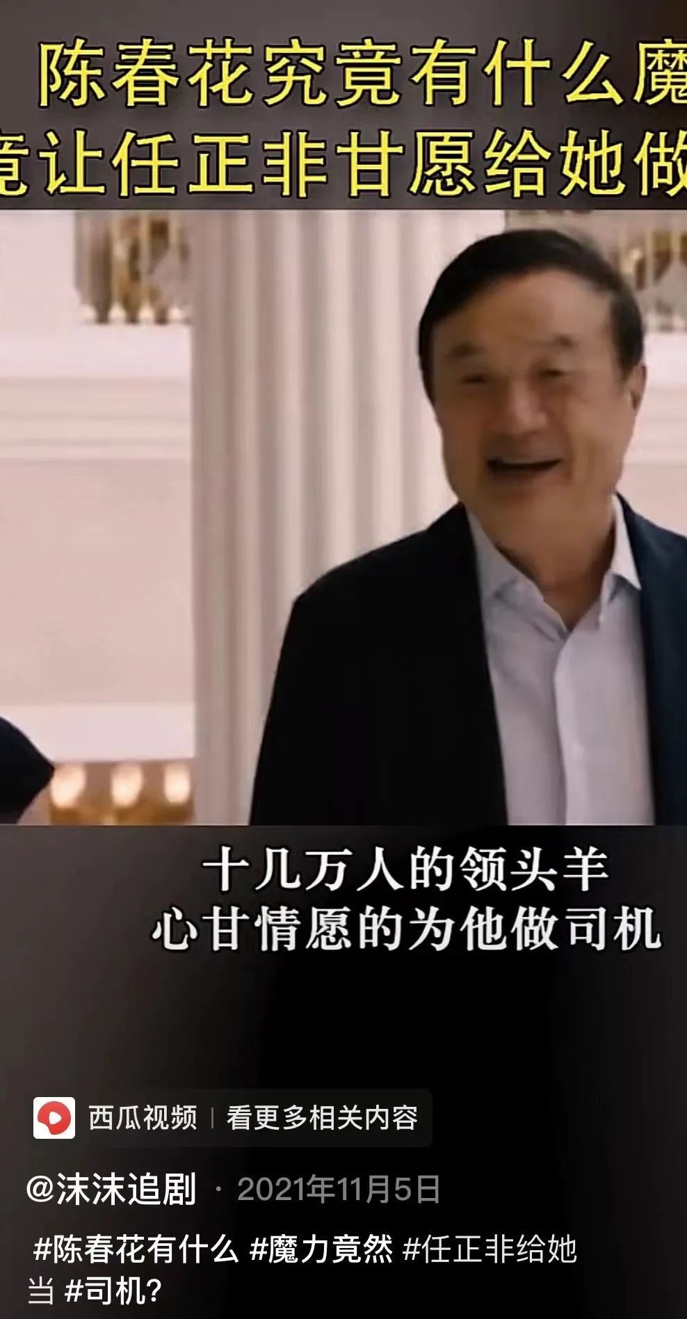 在这些网文和短视频中,陈春花被称为“华为幕后军师”、“华为的第二大脑”,甚至称“任正非聘请陈春花当顾问,听得热泪盈眶,把每句话详细记录在册并奉为珍宝,按照陈春花的建议,大刀阔斧进行一系列整改”、“听了陈春花3点建议,任正非放下身段向离职员工道歉”等。