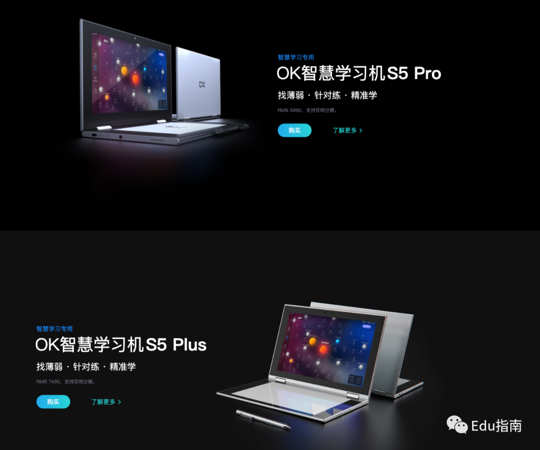 此外OK智慧教育已推出“OK智慧学习机”,功能包括实时记录和分析学习行为,分析学习问题和智能推送学习内容等。从官网来看,该系列价格并不低,主打“智慧学习专用”的OK智慧学习机S5 PRO定价为5990元,PLUS版本定价为7490元。