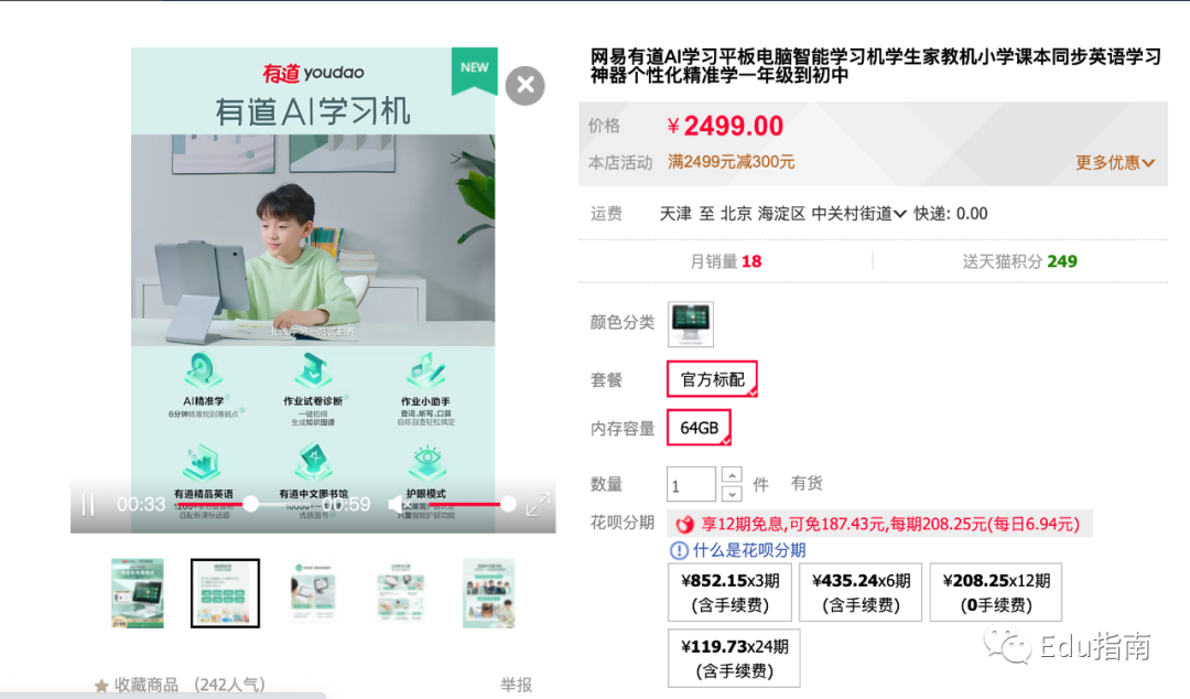 近日该公司再推出AI学习机,支持智能学习路径、智能练习推荐、错题收录等功能,根据天猫数据当前产品售价为2499元。