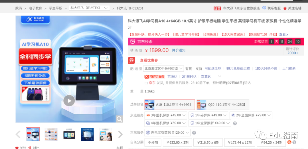 不久前该公司推出AI学习机A10产品,支持全科同步学习、智能读背课文、智能听写和作文批改、口语评测等功能,定价为1899元。