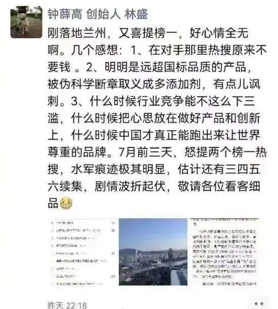 面对几乎全网的“讨伐”,钟薛高创始人林盛终于坐不住了,并亲自下场澄清。据网络图片,7月5日晚间,林盛在个人社交账号发文称,“7月前三天,怒提两个榜一热搜,水军痕迹极其明显,明明是远超国标品质的产品,却被伪科学断章取义成多添加剂。”