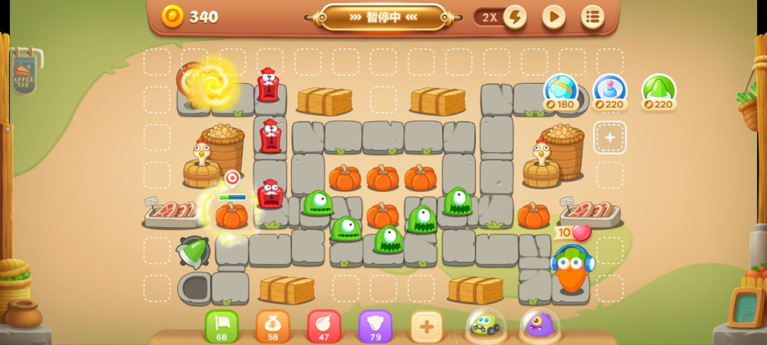 从茶馆实际的游戏体验来看,相较前作,《保卫萝卜4》的美术更加精美可爱,音效也还是那个“味儿”,但是其中基础炮塔的攻击效果明显有所削弱,游戏节奏整体偏慢,因而留给玩家清道具的时间通常十分紧凑,且在部分关卡中,可能同时出现的飞天、遁地的特殊敌人和视野遮挡等效果,大大增加了防御难度,需要玩家全神贯注地多次尝试才有可能“完美通关”。