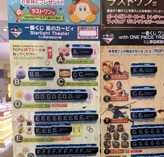 在日本,一套一番赏商品大约有70-80张奖券,单张奖券600-850日元不等,奖项以ABCDE等为序列。字母越靠前,奖品越稀缺,概率越低,例如模型、玩偶等;反之奖品越廉价、概率越高,例如毛巾、吊饰、文具等。
