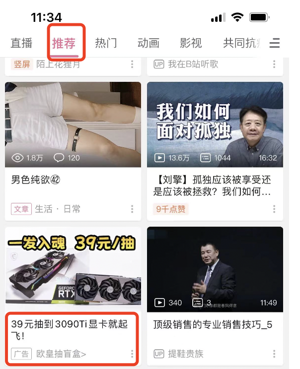在B站推荐页面,有不少广告直接将用户引导到魔力赏界面。