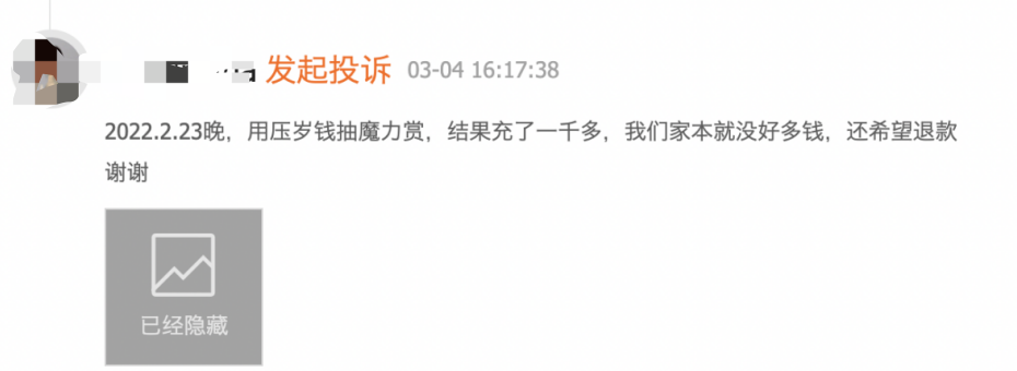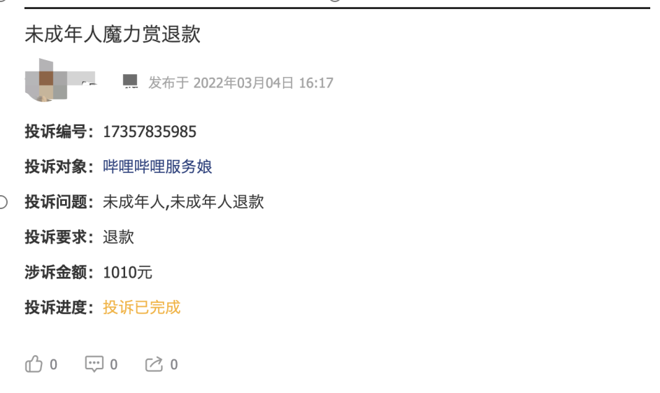 事实证明,在巨大诱惑面前,“青少年模式”形同虚设。派财经观察到在黑猫投诉上,有多位未成年人投诉贴表示,自己用压岁钱一充充了一千多,希望B站退钱。