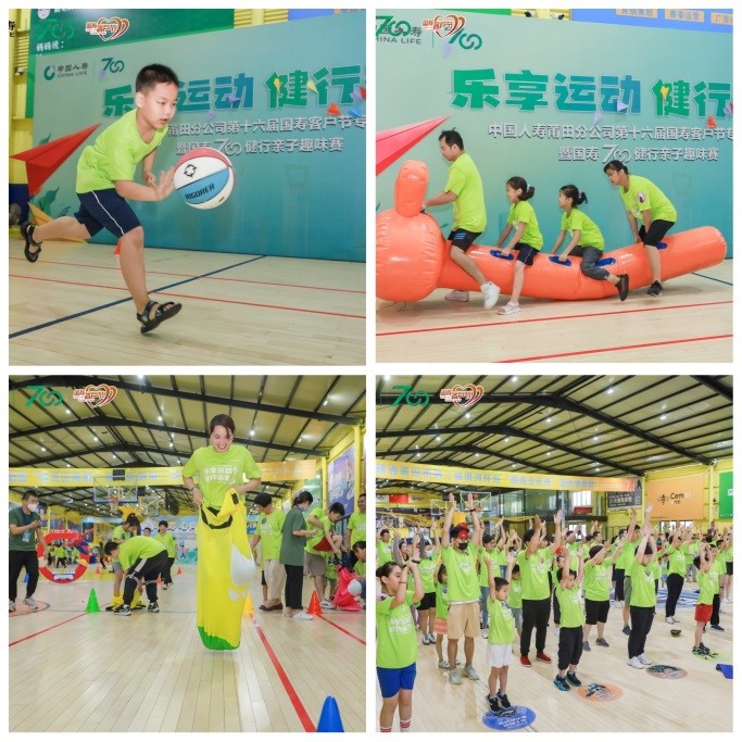 在福建,中国人寿寿险福州、仙游等分支机构纷纷组织以“助推乡村振兴、服务老年群体”为主题的户外保险公益健步走活动,全省系统员工积极响应,通过线下健步走、线上捐步、知识闯关等形式参与其中。中国人寿寿险莆田分公司举行“7.8全国保险公众宣传日”暨“乐享运动 健行未来”国寿700健行亲子趣味赛,80组家庭160位客户参与活动。在“超级联盟接力赛”“超级神速力”“摆脱元引力”等多项体能运动游戏中,家长孩子化身超级英雄,携手共进攻克重重困难与挑战,不仅增进了企业与客户之间的情感交流,更增加客户陪伴孩子的专属时间,弘扬“家文化”,共促“家和谐”。