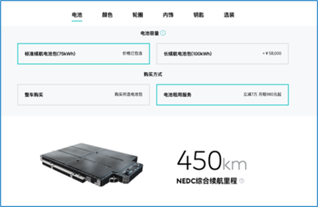 我们派我们的调查员参观了蔚来汽车中心,在那里他与蔚来汽车的销售人员就BaaS进行了交谈。我们的调查员还进行了试驾并进行了电池更换。我们发现 BaaS和非BaaS电池之间没有区别。销售员称,唯一的区别是有两种类型的电池,即短程电池和远程电池。销售人员告诉我们,用户可以根据需要更换两种电池。