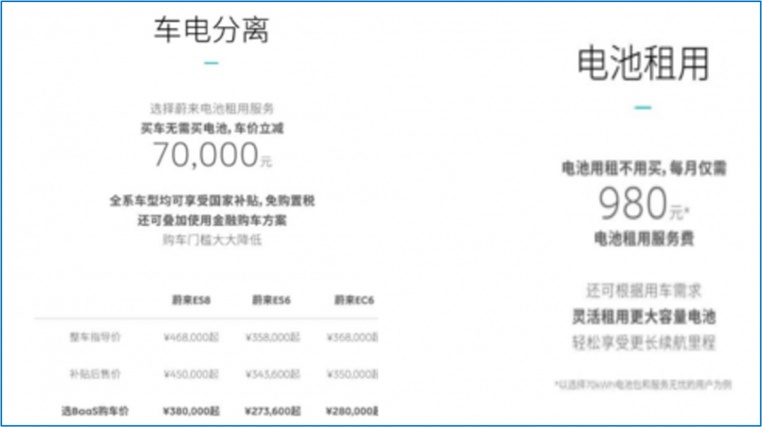 在其电池更换业务的基础上,蔚来推出了“电池即服务”(即BAAS),让客户可以选择购买不带电池的汽车。这种安排让汽车的总价至少降低了7万元人民币,并有望提高电动汽车的采用率。通过该计划,用户可以从BaaS提供商处租用电池,根据租用电池的容量,每月支付980元-1480元,或每年11760元-17680元。