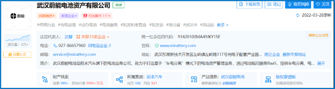 “武汉自2020年末及2021年9月末,蔚能持有BaaS电池资产数量分别为4115块和40053块,业务规模明显增长。”