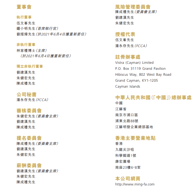 2020年4月,明发集团创始人兼主席黄焕明辞任。同时,执行董事黄丽水也辞任。随后于7月,黄庆祝辞任执行董事兼集团首席执行官,黄连春辞任执行董事、集团首席运营官兼执行副总裁。